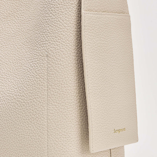 Damla kahve torbasının asılı kulaklarından esinlenerek, çift taraflı dana derisi omuz askıları ve asılı kulak şeklindeki yan cepleriyle pratik ve benzersiz bir büyük tote çanta yarattık. Süet gövdesi çantaya şık ve sofistike bir hava katıyor.